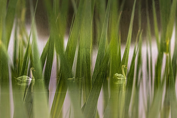 Das Bild entstand an einem kleinen Teich, wo eine Schwanenfamilie gerade ihre Jungen vorführte.